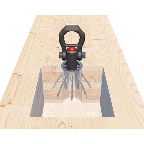 Der HebeFix Mini fungiert als Hebeanker im Holzbau in Kombination mit dem Kugeltragbolzen. Kleinere Lasten lassen sich damit ohne Weiteres anheben und transportieren. Der HebeFix Mini zeichnet sich durch einen Kragen am oberen Rand aus. Dieser verhindert das Durchrutschen im Bohrloch. Die Verwendung mit Schrauben erlaubt es den Hebeanker mehrfach einzusetzen.