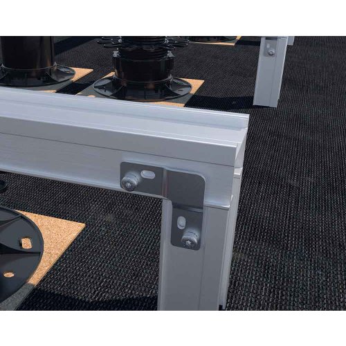 Mit dem 90° Profilverbinder von Eurotec kann ein 90°-Winkel in Verbindung mit den Alu-Systemprofilen EVO, EVO Light oder Eveco in der Terrassenunterkonstruktion hergestellt werden. Durch das Einsetzen des Profilverbinders in die Nut der Profile wird ein Verrutschen während des Schraubvorgangs verhindert. Hierfür wird er einfach an der Außenseite des entsprechenden Profils verschraubt und sorgt in Kombination mit dem Eckverbinder Eveco für Sicherheit und einen zusätzlichen Halt.
