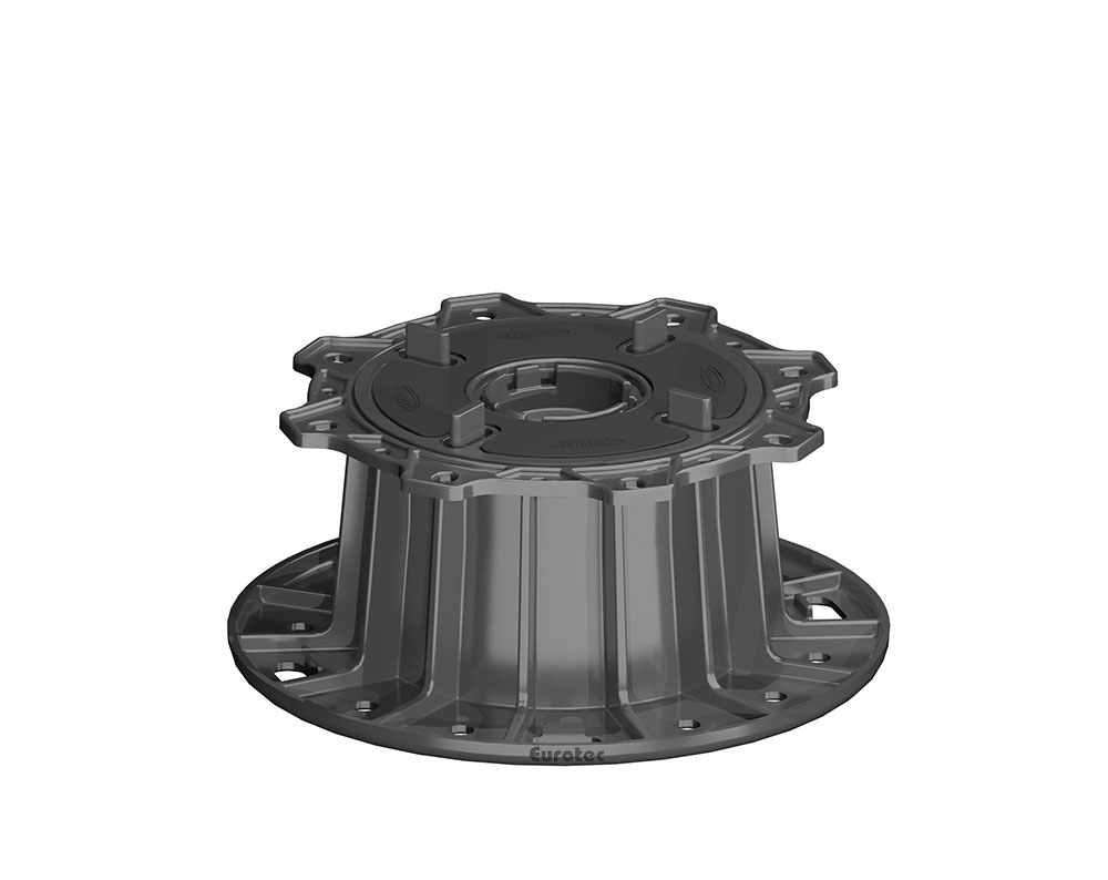 Die Verstellfüße GIANT von Eurotec eignen sich gezielt für die Einzelauflagerung von schweren, großformatigen Steinplatten oder Keramikfliesen. Die Reihe hat vier Varianten zu bieten, welche alle über einen stufenlos justierbaren Bereich von 40 bis 220 mm verfügen. Die Aufbauhöhe lässt sich mit dem Erweiterungsring GIANT um weitere 170 mm erhöhen.